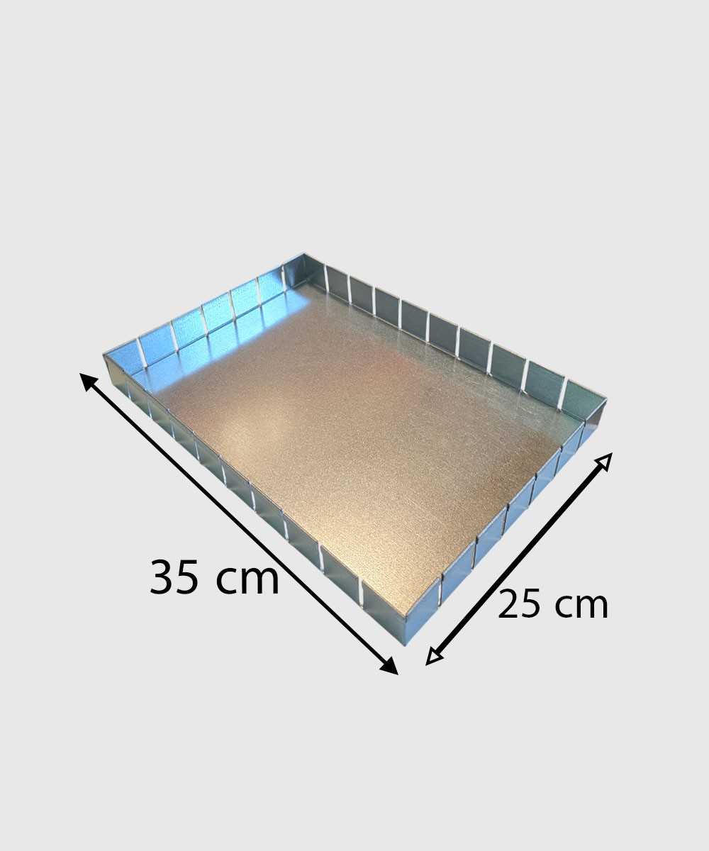 دیس گالوانیزه اسلایسی 25 در 35 سانت برای پخت، سرو و چیدمان انواع اسلایس کیک، شیرینی، براونی، دسرهای فرپز و فینگر فودها مناسب است. ابعاد استاندارد آن کمک میکند تا محصول نهایی بهراحتی پخته، سرو و تقسیم شود.