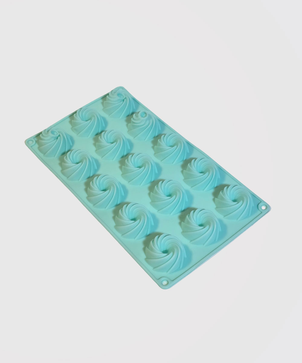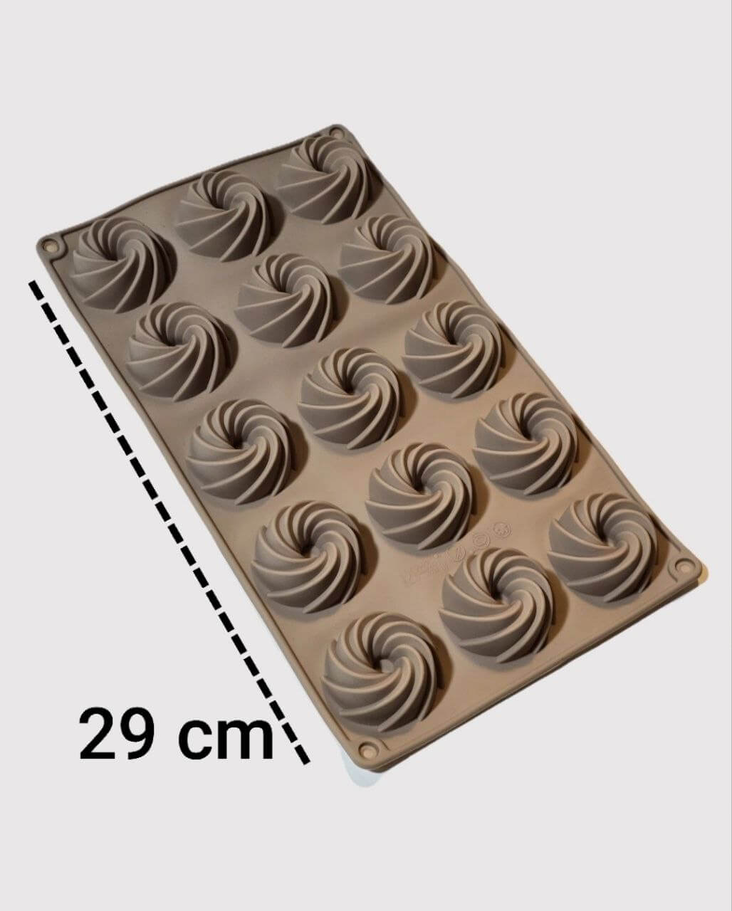 قالب سیلیکونی 15 خانه پیچ با طراحی منظم و شکل پیچدار هر حفره، برای تهیه انواع شیرینی، حلوا و دسرهای کوچک بسیار مناسب است. ظاهر چشمنواز این قالب باعث میشود محصولات نهایی ظاهری حرفهای و شکیل داشته باشند، ایدهآل برای پذیراییهای خاص و مجالس مجلل.