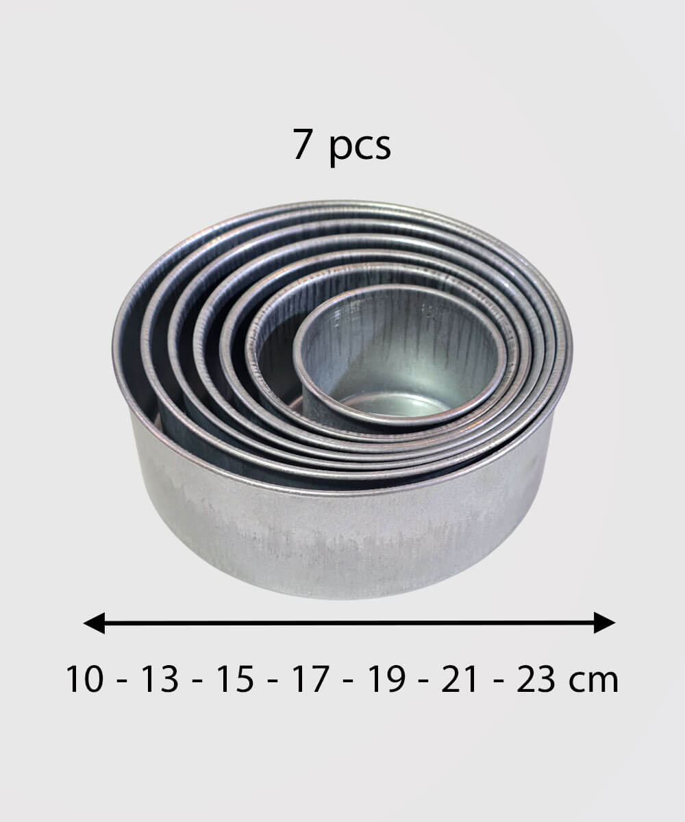 وجود 7 سایز کاربردی از 10 تا 23 سانت باعث میشود بتوانید برای هر نوع کیک—from کوچک تا خانوادگی—به راحتی قالب مناسب انتخاب کنید.