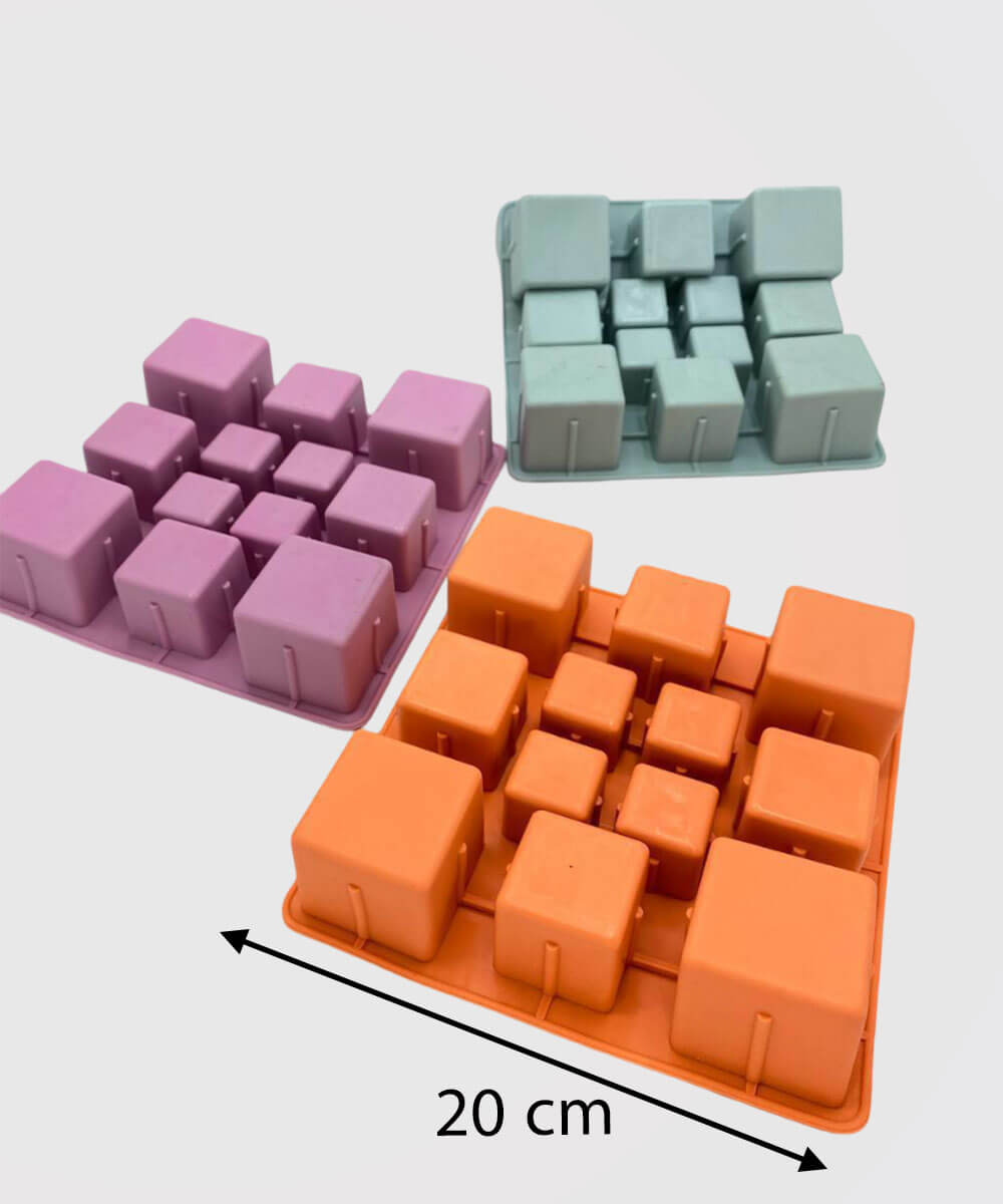 مکعب میکس سیلیکون 12 خانه با طراحی ۱۲ حفره مکعبی شکل، به شما امکان می‌دهد تا انواع شکلات، قالب یخ، ژله و حتی دسرهای کوچک را در طرح‌های یکدست و جذاب آماده کنید. هر خانه به گونه‌ای طراحی شده که خروج مواد به‌راحتی انجام می‌شود، بدون اینکه فرم اصلی آن آسیب ببیند.