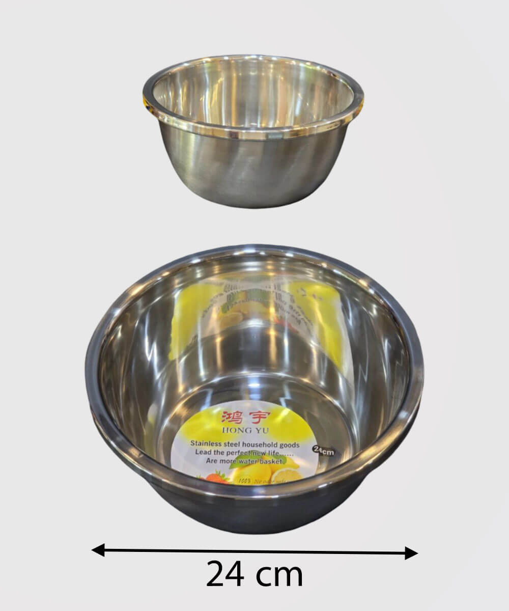 از کاسه استیل 24 سانت می‌توانید برای آماده‌سازی مواد کیک، هم‌زدن تخم‌مرغ، ترکیب خمیر یا حتی سرو مواد غذایی استفاده کنید. این کاسه برای قنادان حرفه‌ای، رستوران‌ها و استفاده خانگی گزینه‌ای کاملاً اقتصادی و بادوام است.