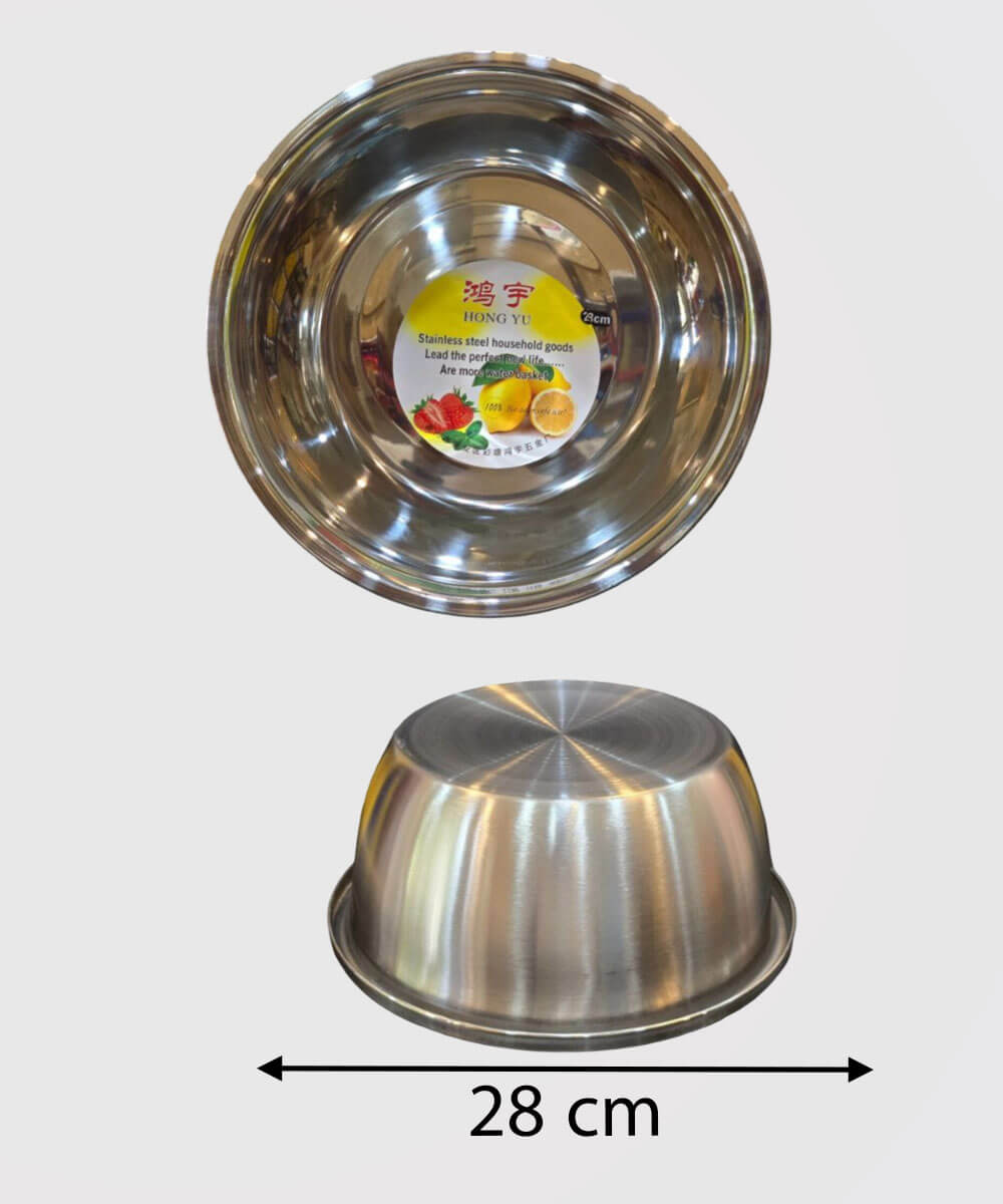 کاسه استیل 28 سانت یکی از پرکاربردترین لوازم آشپزخانه و قنادی است که با طراحی استاندارد و جنس استیل ضدزنگ، برای مخلوط‌کردن مواد، تهیه خمیر، هم‌زدن و سرو مواد غذایی گزینه‌ای عالی محسوب می‌شود.